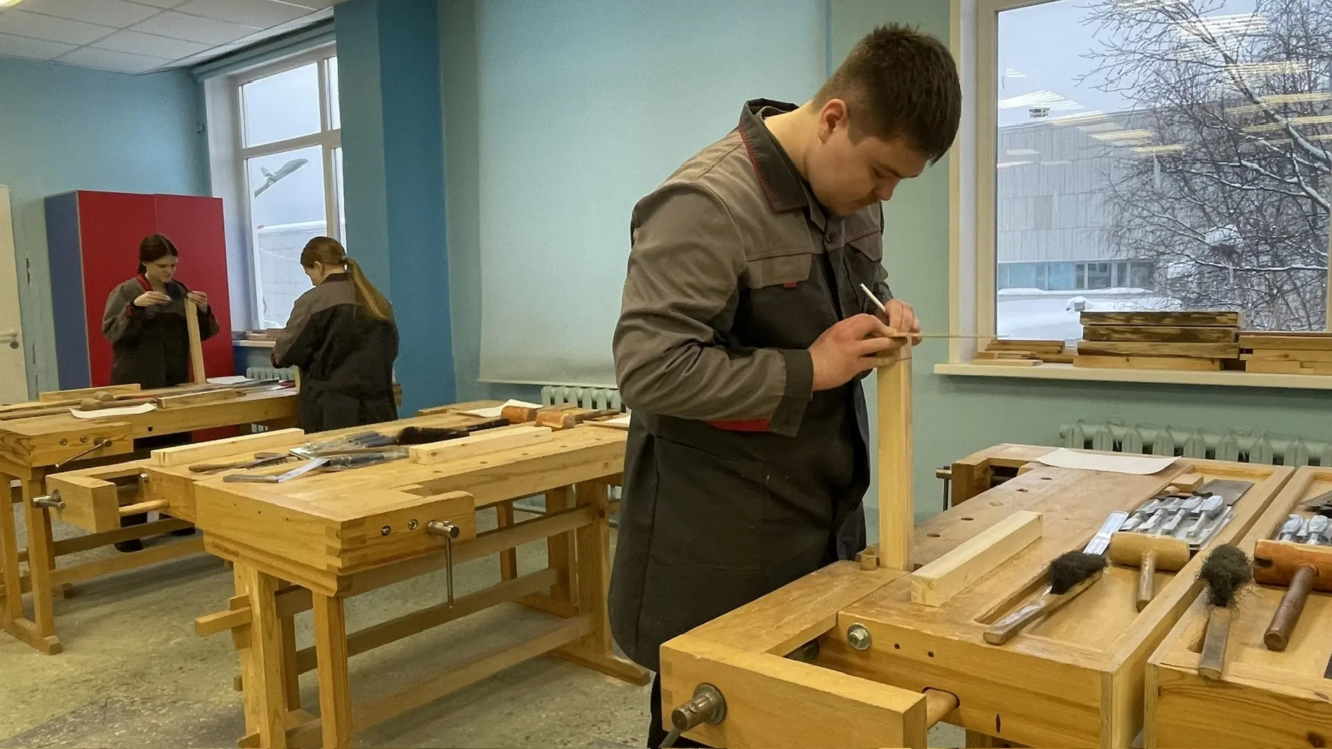 Студенты осваивали технологию изготовления углового соединения с одинарным шипом. Сначала – чертежи и расчёты, потом – стамеска, киянка и точность до миллиметра. Главный итог урока: прочное и качественное соединение, которое не стыдно показать любому плотнику.