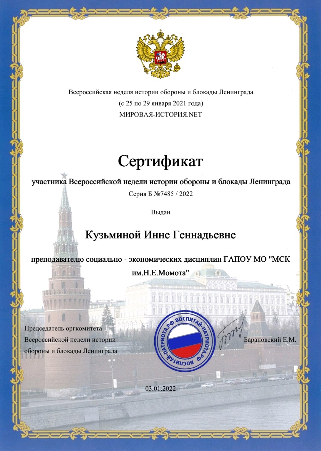 26.01.2022 Всероссийская неделя истории обороны и блокады Ленинграда