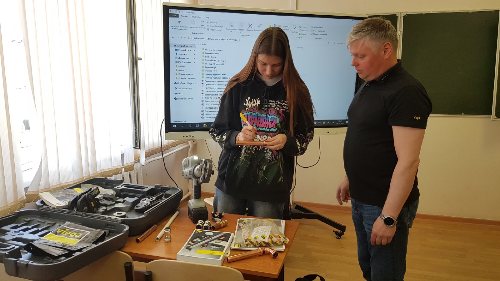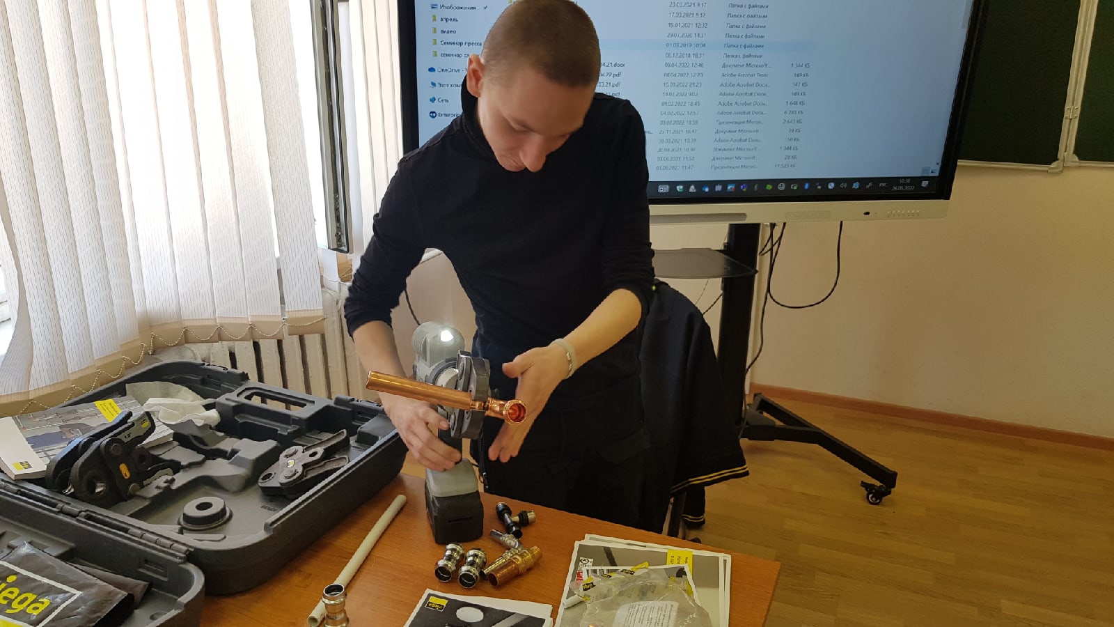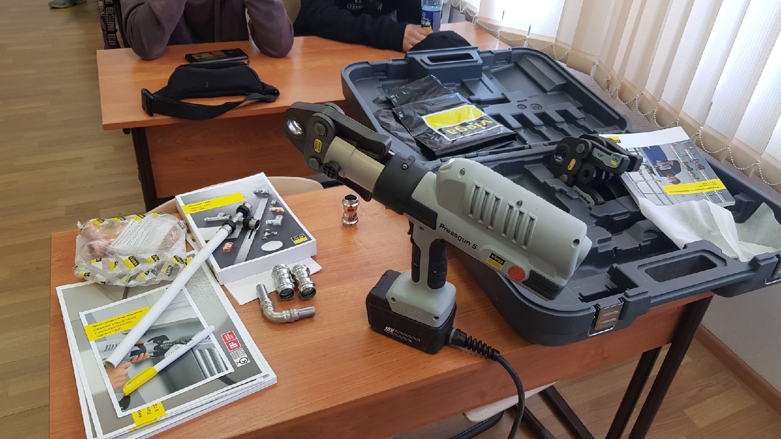 На практическом занятии по технологии пресс-систем Viegа каждый желающий на личном опыте смог убедиться в надежности и прочности пресс-фитингов, а также в легкости монтажа при помощи пресс-инструмента.
