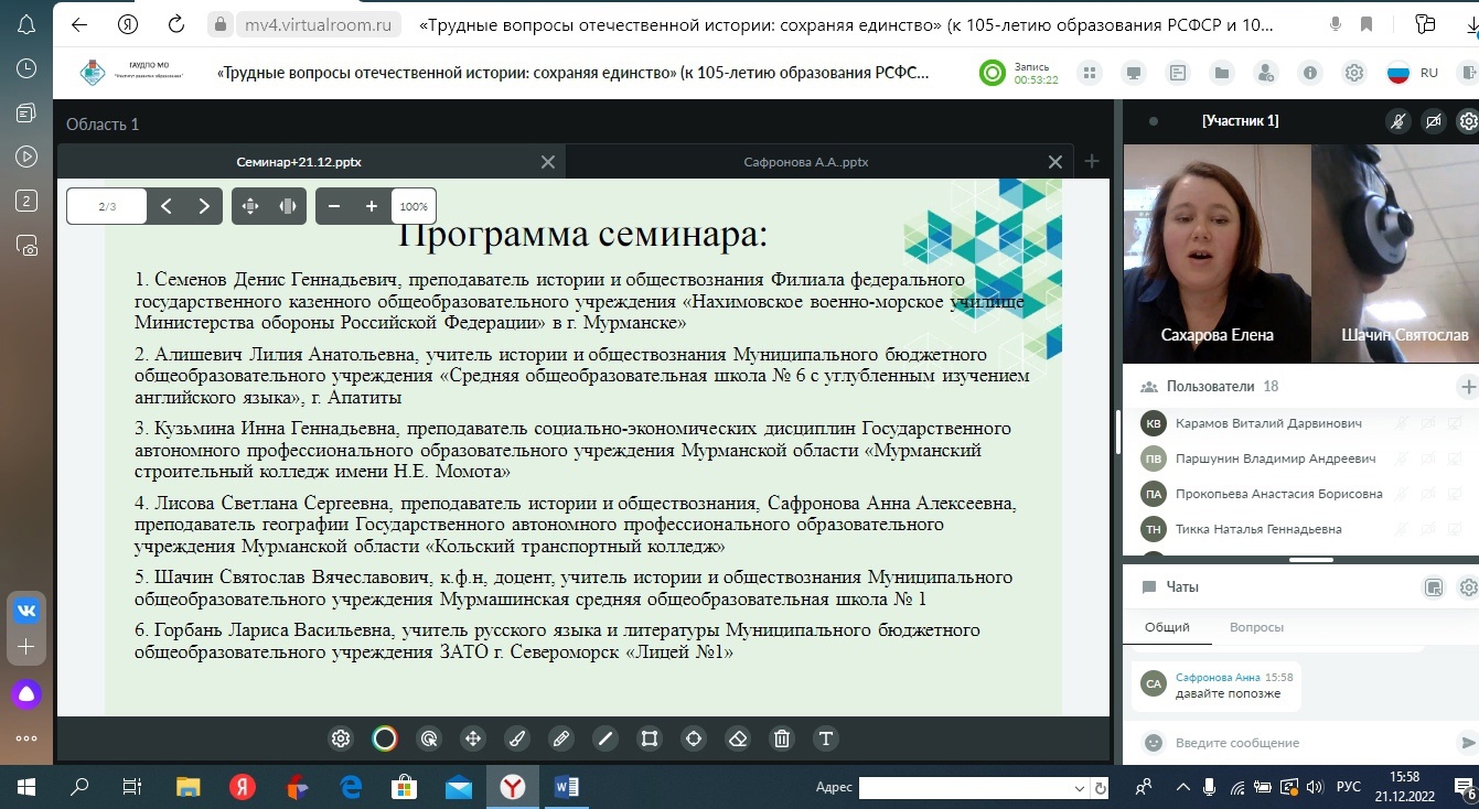 Преподаватель МСК Кузьмина И.Г. приняла участие в семинаре "Трудные вопросы Отечественной истории: сохраняя единство (к 105-летию образования РСФСР)"