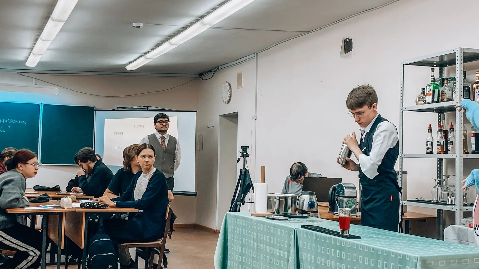 Студенты погрузились в тему северной гастрономии: педагог продемонстрировал процесс приготовления коктейлей, акцентируя внимание на использовании региональных компонентов. А потом… учебный кабинет превратился в творческую лабораторию! Объединившись в группы, ребята прошли полный цикл создания авторского продукта: придумали собственные фирменные коктейли, оформили технологические карты, провели расчёт калькуляции. И в заключении – презентовали творения членам жюри!