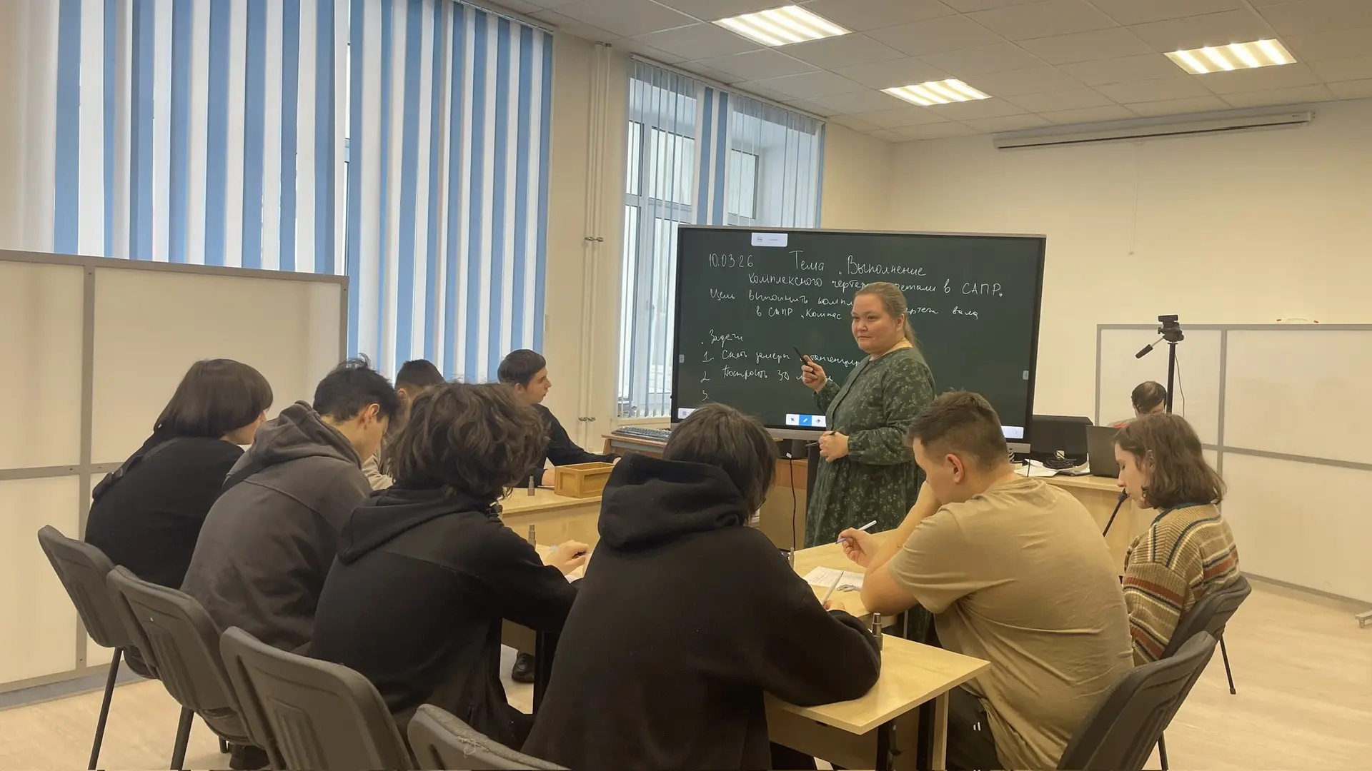 На уроке будущие специалисты работали в современных автоматизированных программах и создавали точные чертежи будущих деталей. Здесь важно заложить данные так, чтобы чертёж «читался» без вопросов. Именно такие навыки сегодня требуются на реальных стройках и производствах.